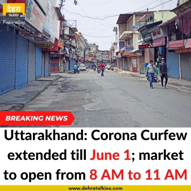 Given the Covid scenario in Uttarakhand, the state government has extended the Corona Curfew by another week. The curfew will start from tomorrow and will go on till June 1.
