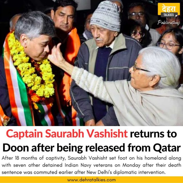 Captain Saurabh Vashisht, one of the eight Indian Navy veterans who were detained by Qatar on espionage charges, returned to his hometown Dehradun after months of captivity. He said that the feeling of returning home was difficult to put into words.