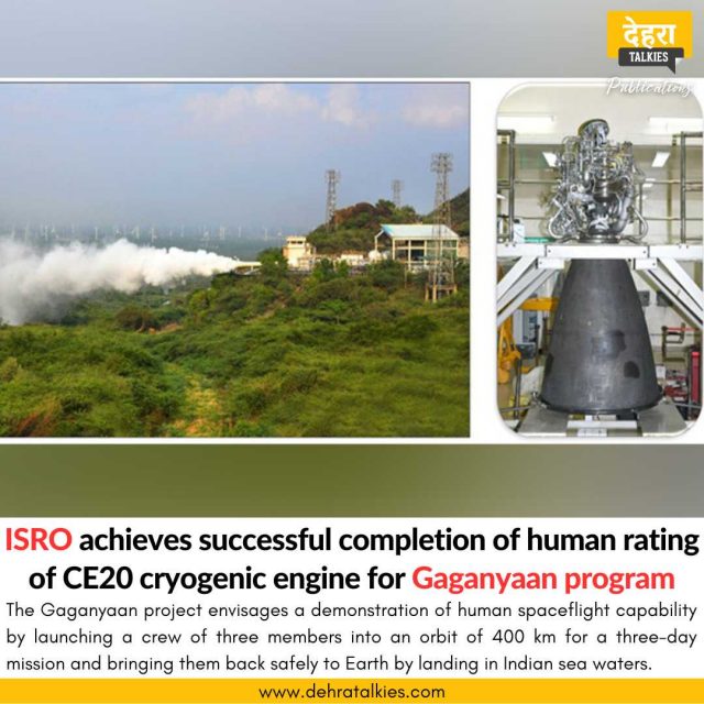 The Indian Space Research Organisation (ISRO) has successfully completed the human rating of its CE20 cryogenic engine, a critical component of the Gaganyaan missions, an official said on Wednesday.