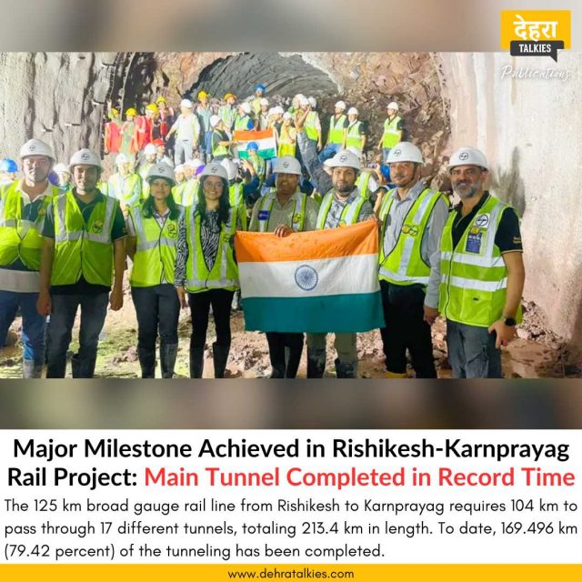 The 125 km broad gauge rail line from Rishikesh to Karnprayag requires 104 km to pass through 17 different tunnels, totaling 213.4 km in length. To date, 169.496 km (79.42 percent) of the tunneling has been completed. Officials from Rail Vikas Nigam extended their congratulations to the construction team from Larsen & Toubro (L&T) for this remarkable feat.