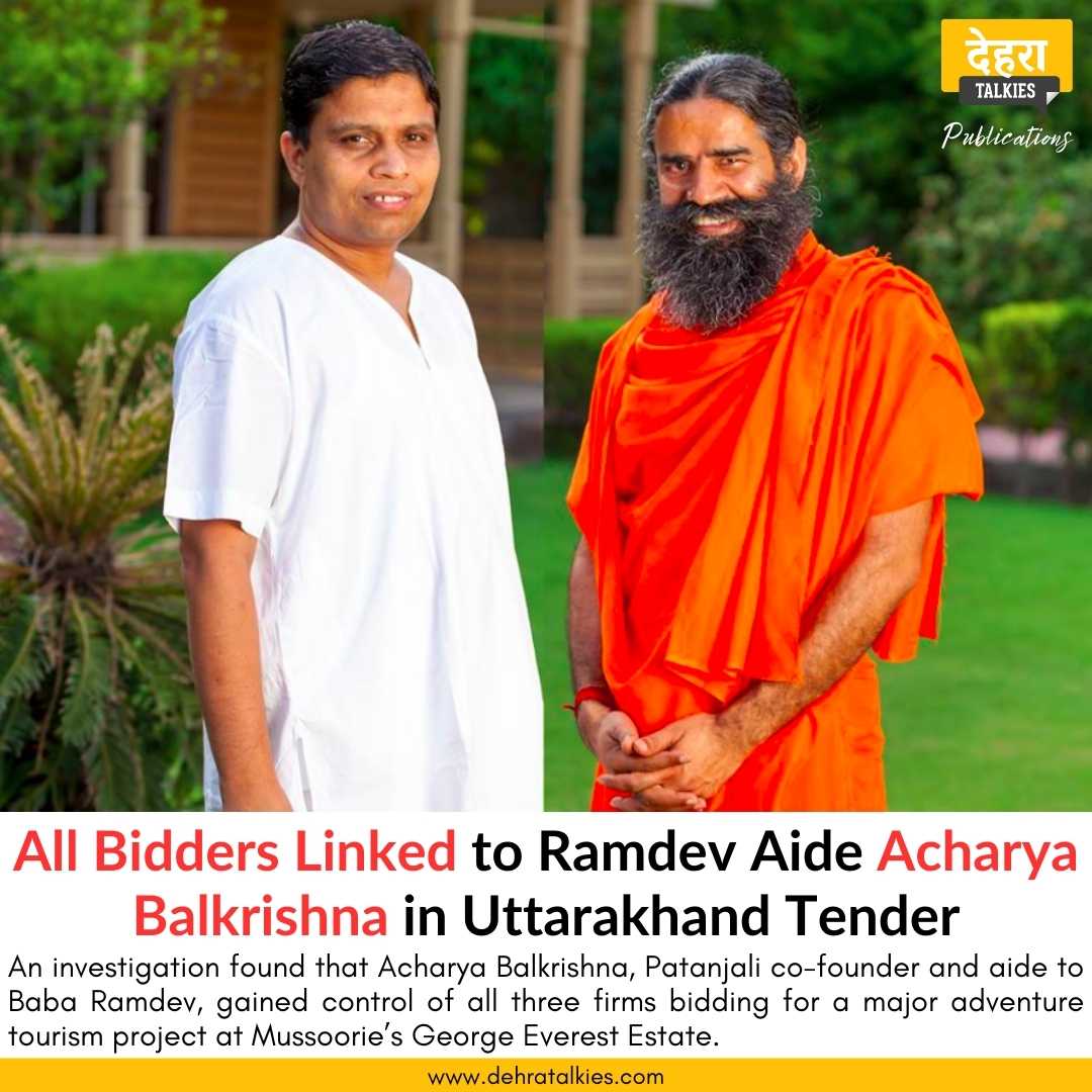 According to documents reviewed by The Indian Express, all three firms that participated in the tender were linked to Balkrishna. He holds more than 99% stake in Prakriti Organics India Pvt Ltd and Bharuwa Agri Science Pvt Ltd. In the third bidder, Rajas Aerosports and Adventures Pvt Ltd, Balkrishna initially owned 25.01% during the bidding process and later increased his stake to 69.43%. Additionally, Prakriti Organics and Bharuwa Agri Science purchased 17.43% of Rajas Aerosports, while four other Balkrishna-linked companies together acquired 33.25%.
