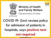 COVID-19: Govt revises policy for admission of patients in hospitals, says positive test not...